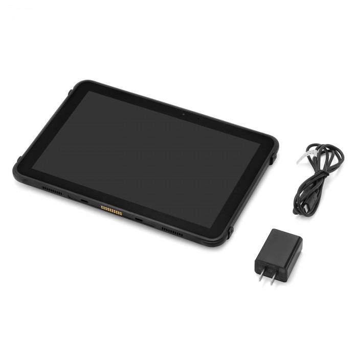 Корпус планшетного компьютера сделан из надежных материалов: поликарбоната и пластика. Он выдерживает большое количество падений с высоты до 1,2 м. Прочное защитное стекло Corning Gorilla защищает сенсорный экран от повреждений. На корпусе есть кнопки промышленного типа: 6 на лицевой панели и 3 на боковой стороне. Степень защиты корпуса: IP65.